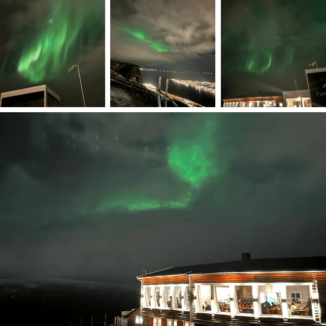 The highlight? Seeing the Northern Lights in full display from the Fjellheisen observation deck, reached by a cable car ride into the mountain’s night sky. The aurora danced just for us that night, and we’ll never forget the silence, the cold, and the awe as green lights rippled across the stars.